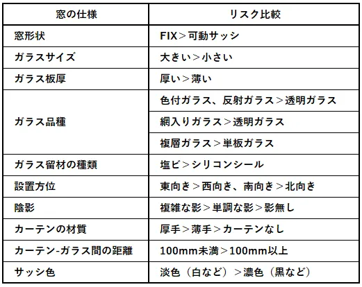 ”窓の設置条件別”の熱割れリスク